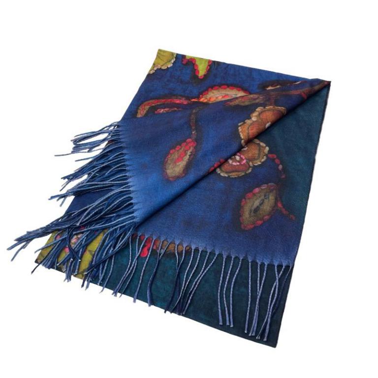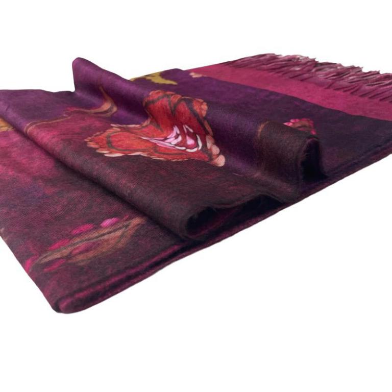 Bufanda de Mujer en Lana con Precioso Estampado de Flor, Elegante Diseño y Flecos.