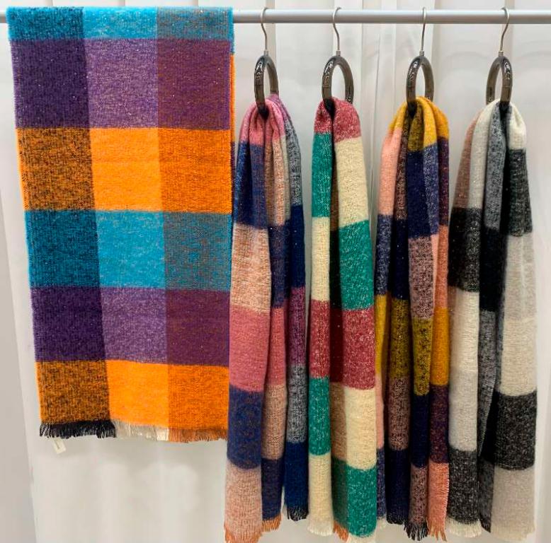 Bufanda de Lana para Mujer con Bonitos Colores y Diseño de Cuadrados.