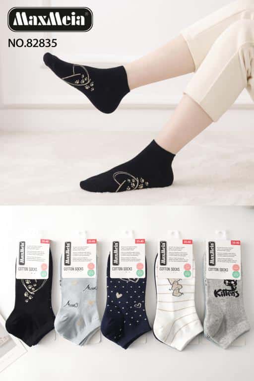 Calcetines Cortos de Algodón Peinado con Alegres Diseños y Talla Única para Mujer