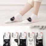 Calcetines Cortos de Algodón Peinado para Mujer con Diseño de Corazones y Caritas