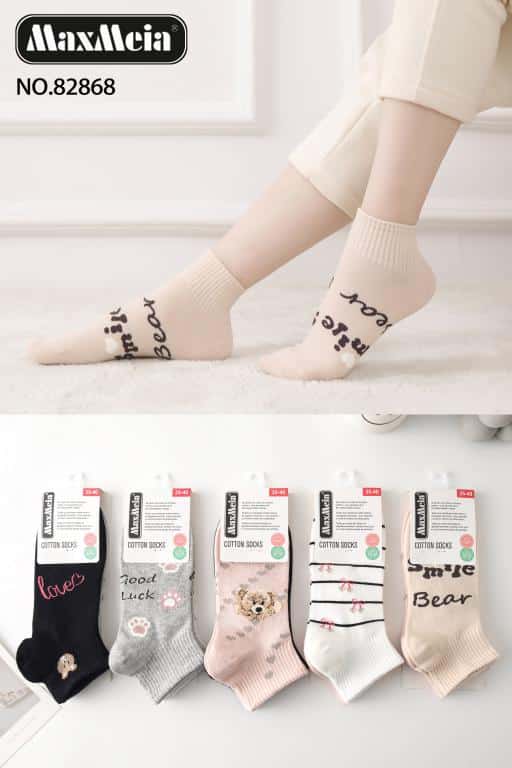 Calcetines Cortos de Mujer en Algodón Peinado con Preciosos Diseños Animados y Talla Única