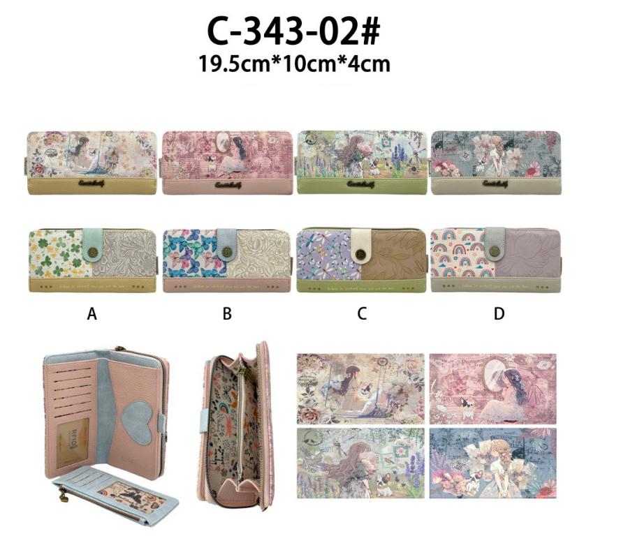 Interior: Espacio para tarjetas, billetes y fotos. Bolsillo con cierre de cremallera que divide el espacio en 2 compartimentos diferentes.