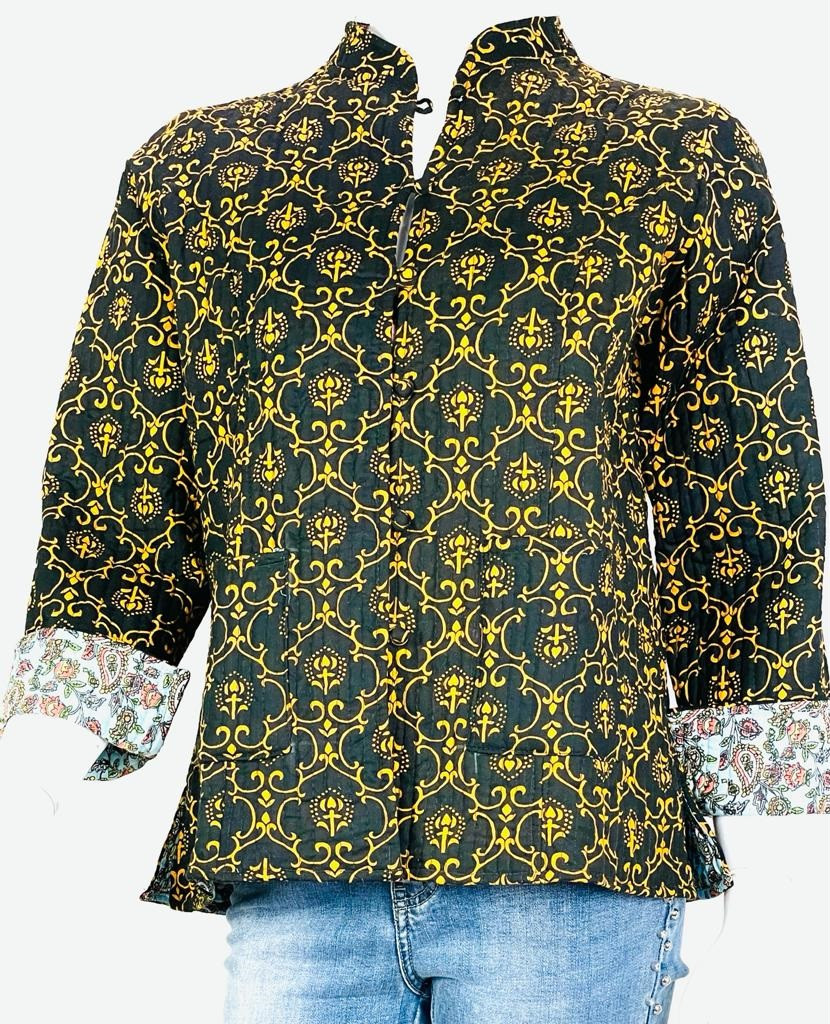 Chaqueta reversible estilo indio con botones, cada chaqueta es única en diseño.