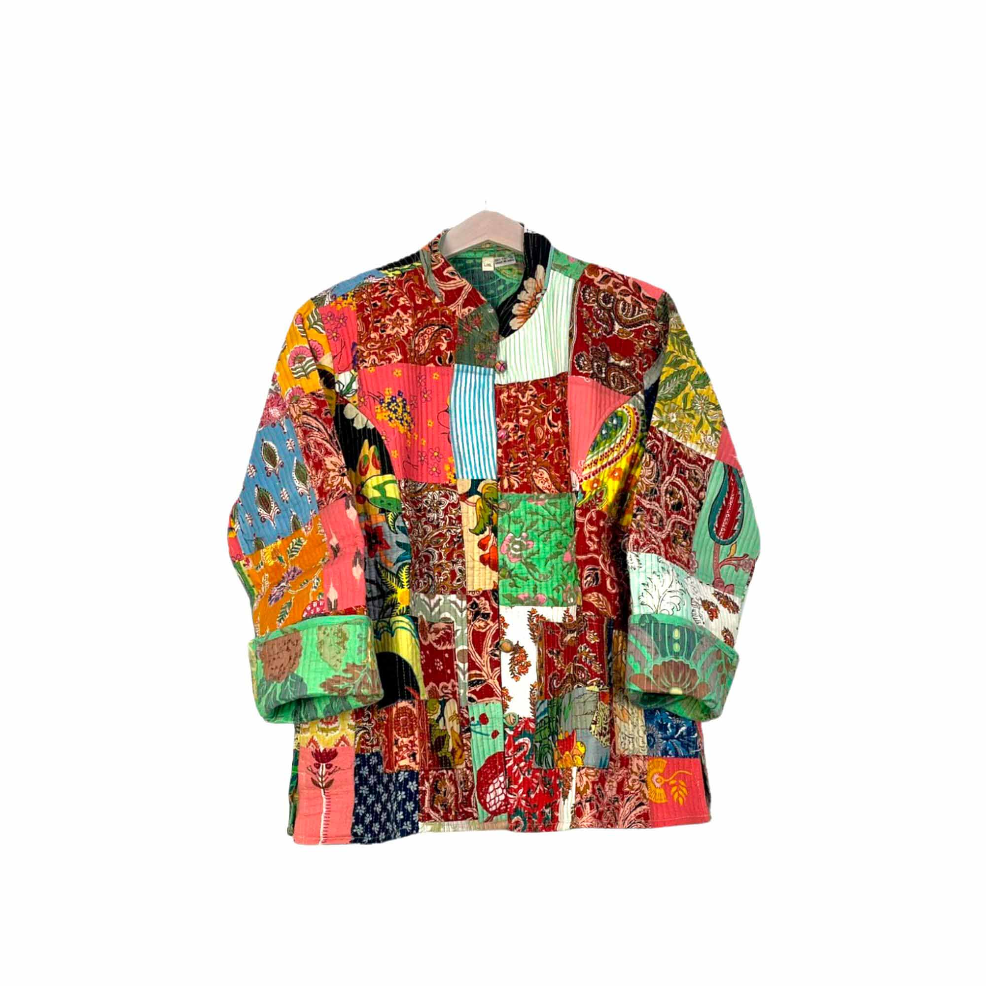 Chaqueta Reversible De Algodón Tela Pachtwork para Mujer con Estilo Exclusivo. Fabricado en India.
