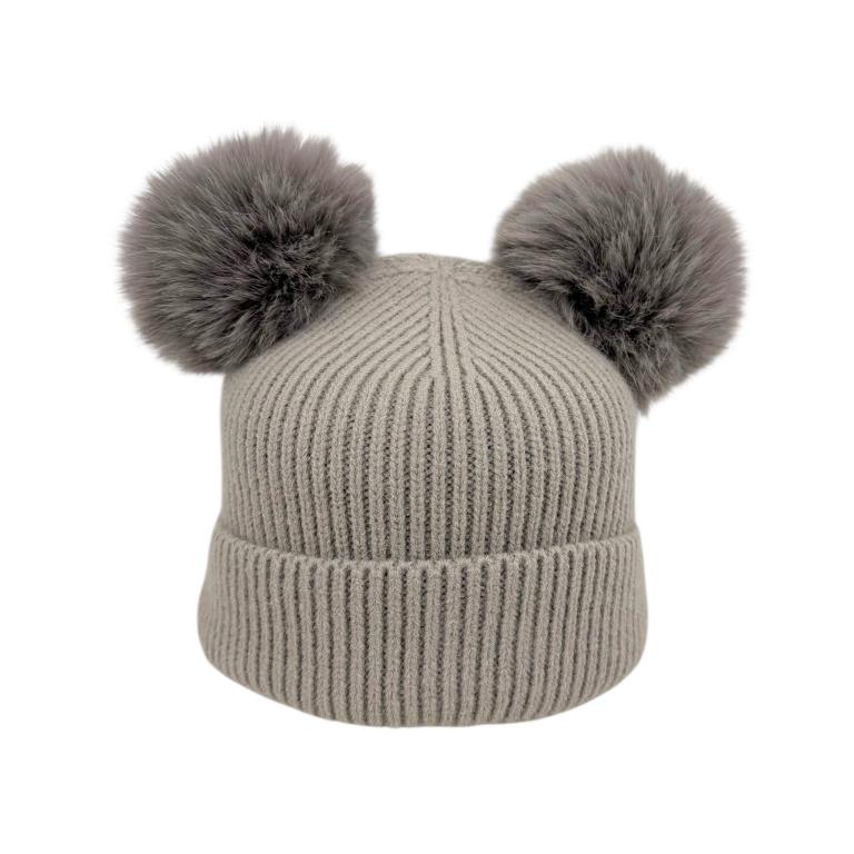 Gorro de Lana y Cashmere para Mujer con 2 Pompones Decorativos Extraíbles
