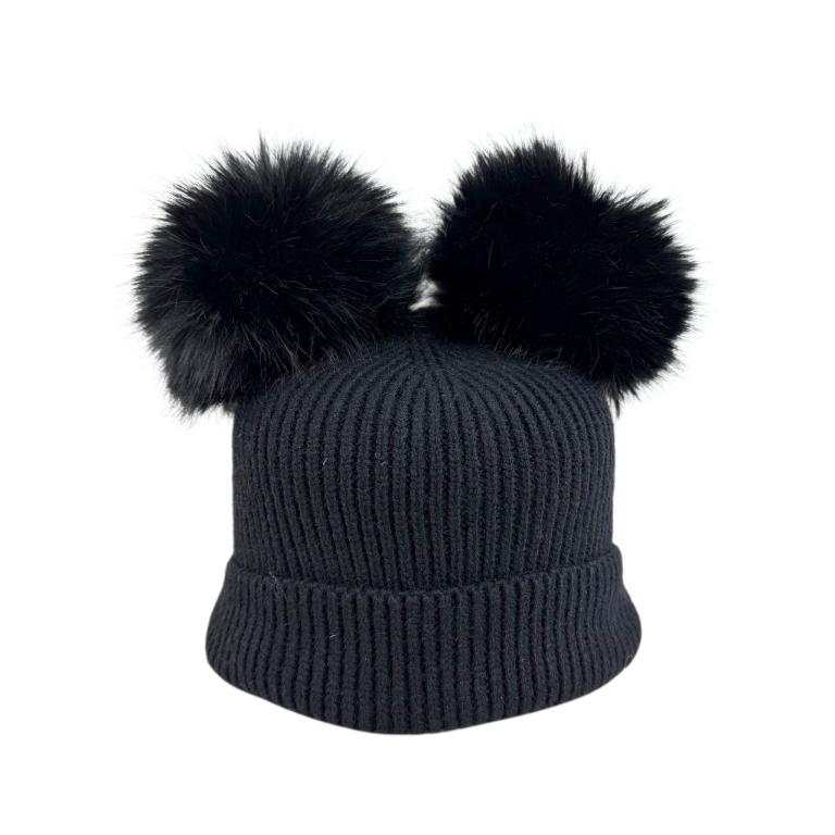 Gorro de Lana y Cashmere para Mujer con 2 Pompones Decorativos Extraíbles y Colores Lisos.