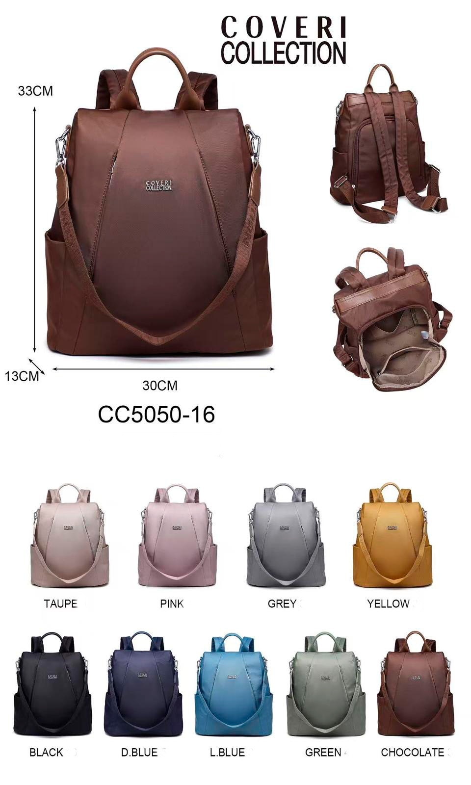 Mochila Antirrobo en Nylon con 5 Compartimentos y Gran Capacidad para Mujer. Colección Coveri Collection.