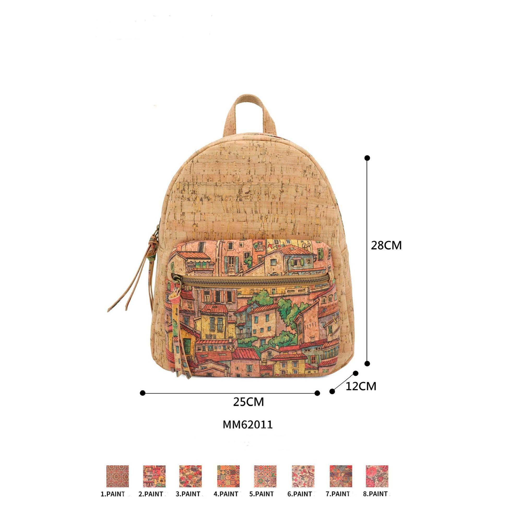 Amplia Mochila Ecológica de Corcho con Bolsillo Frontal de 2 Cremalleras para Mujer
