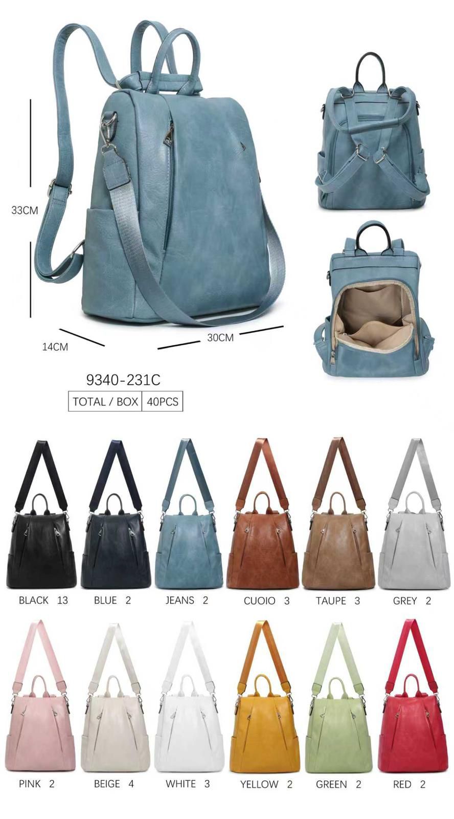 Mochila Sintética Antirrobo para Mujer con 2 Bolsillos Frontales con Cierre de Cremallera y Compartimentos Organizadores Laterales.