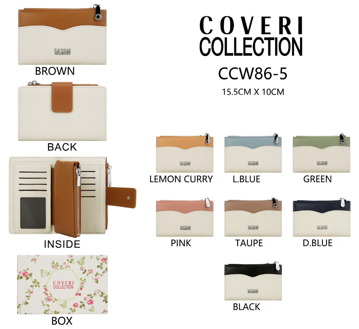 Monedero Bicolor Sintético con Caja, Compartimento Frontal, Espacio para Tarjetas y Cremallera para Mujer. Colección Coveri Collection.