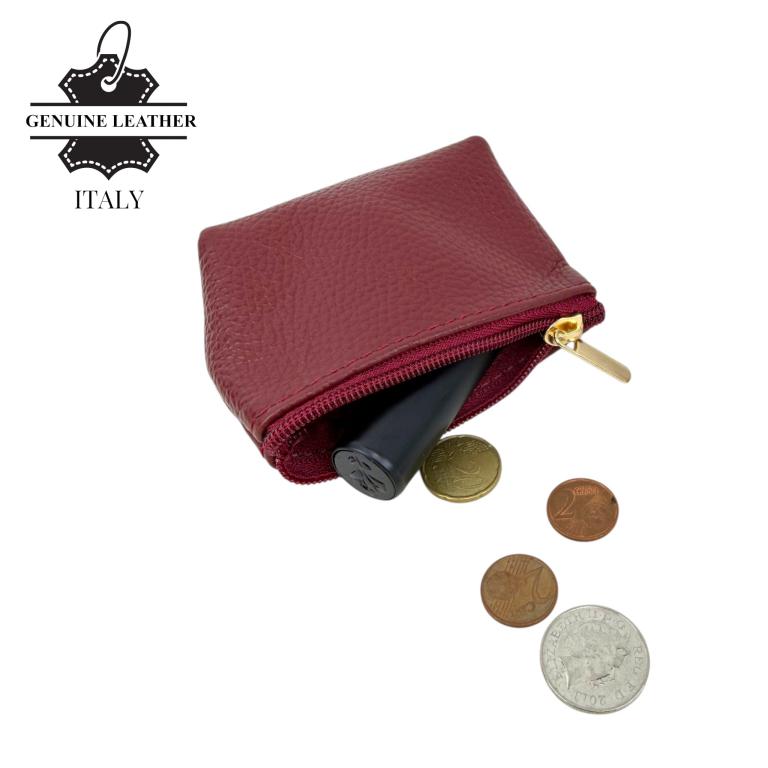 Monedero Compacto en Piel Italiana para Mujer con Cierre de Cremallera y Colores Lisos.