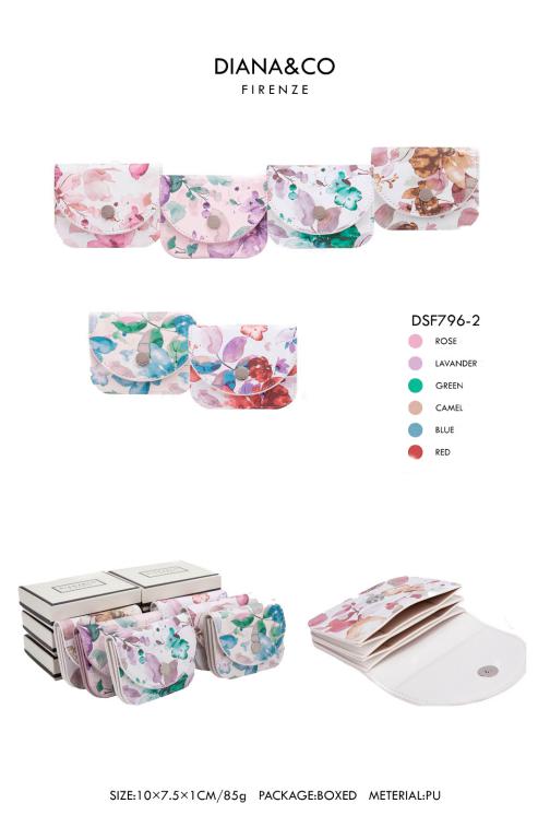 Monedero Compacto de Piel Sintética para Mujer con Caja, Diseño Flores y 3 Compartimentos Interiores. Colección Diana & Co Firenze.