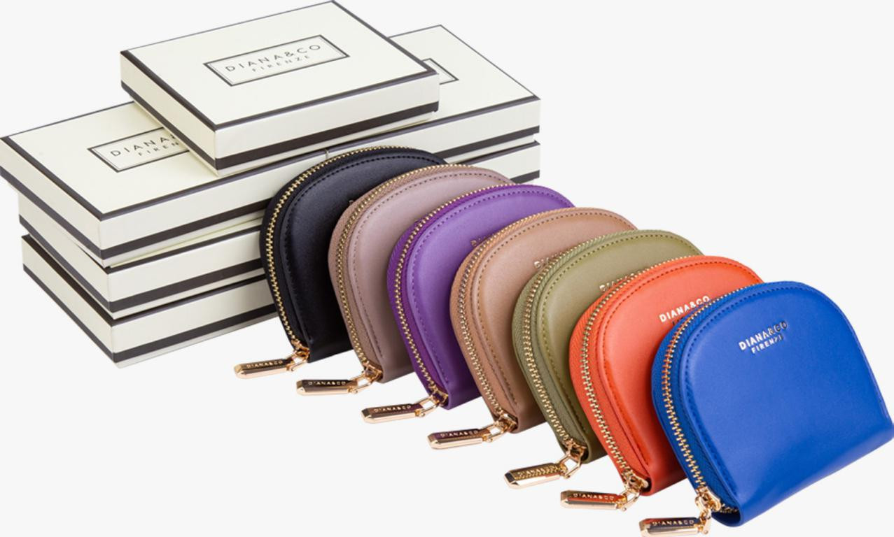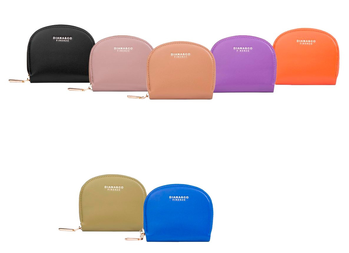 Monedero Sintético y Compacto de Mujer con Caja, Cierre de Cremallera y Espacio para Tarjetas. Colección Diana & Co Firenze.