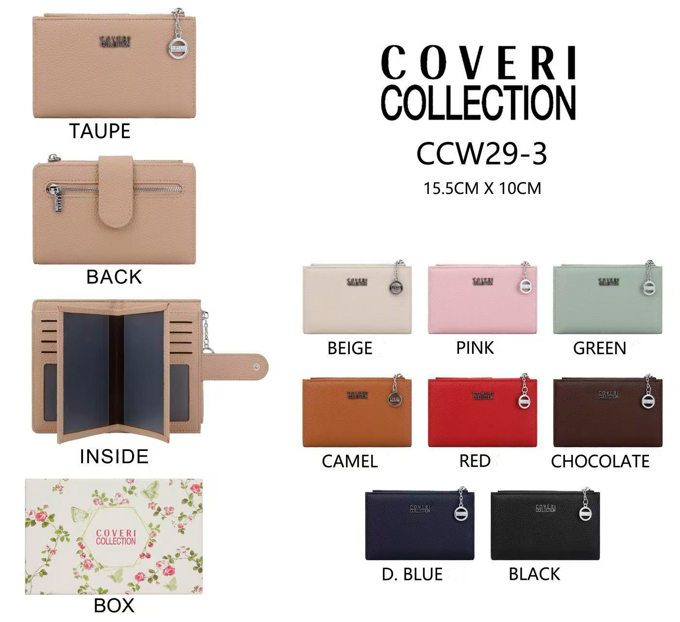 Monedero Sintético con Caja, Espacio para Tarjetas y Bolsillo Trasero con Cierre de Cremallera para Mujer. Colección Coveri Collection.