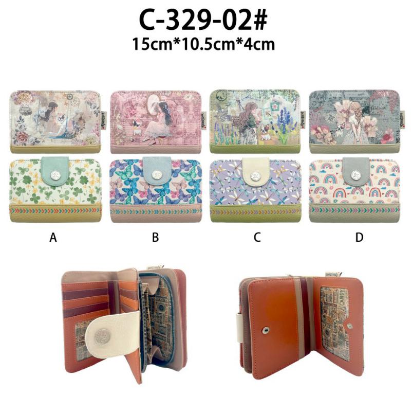 Interior: Bolsillo con cierre de cremallera y 2 compartimentos. Espacio para tarjetas, billetes, fotos y monedas.