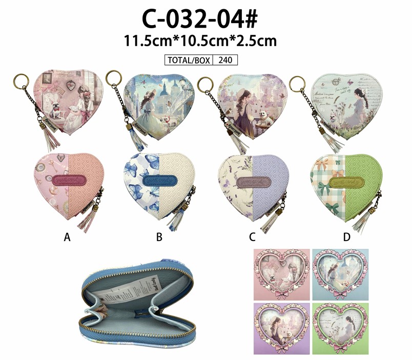 Monedero Sintético con Diseño de Muñeca, Forma Corazón, Anilla, Caja y Cremallera con Flecos para Mujer.