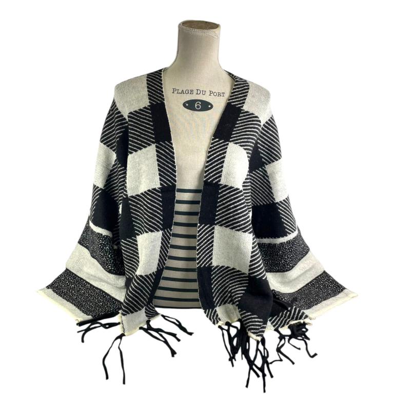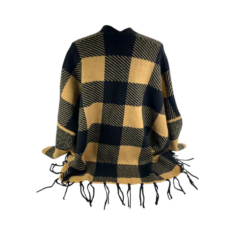 Precioso Poncho de Mujer Con Diseño Cuadrados y Flecos Decorativos.