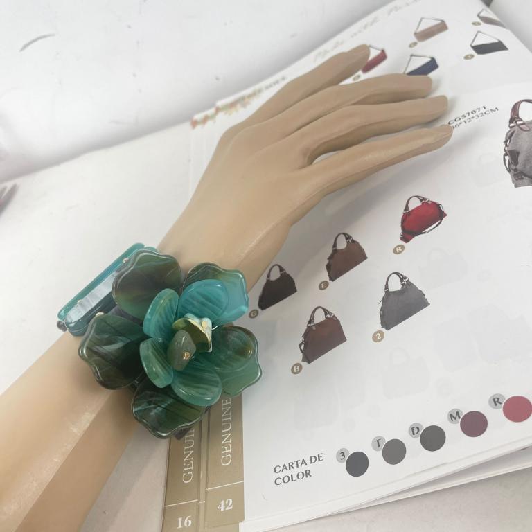 Pulsera de Nácar Ajustable y Cómoda con Diseño de Flor para Mujer. Fabricado en Italia.