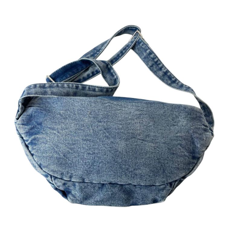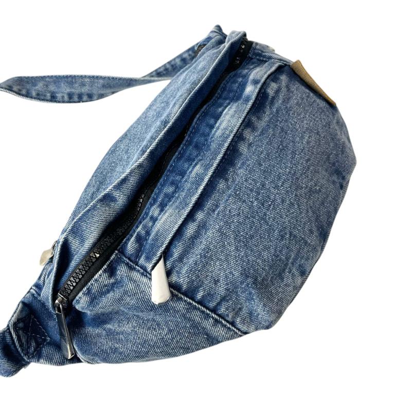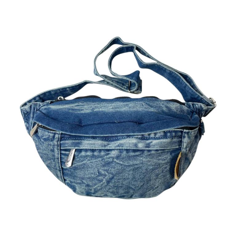 Riñonera de Algodón y Tela Vaquera para Mujer con 3 Bolsillos con Cierre de Cremallera y Asa Larga Ajustable.