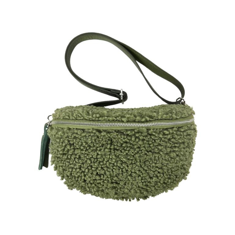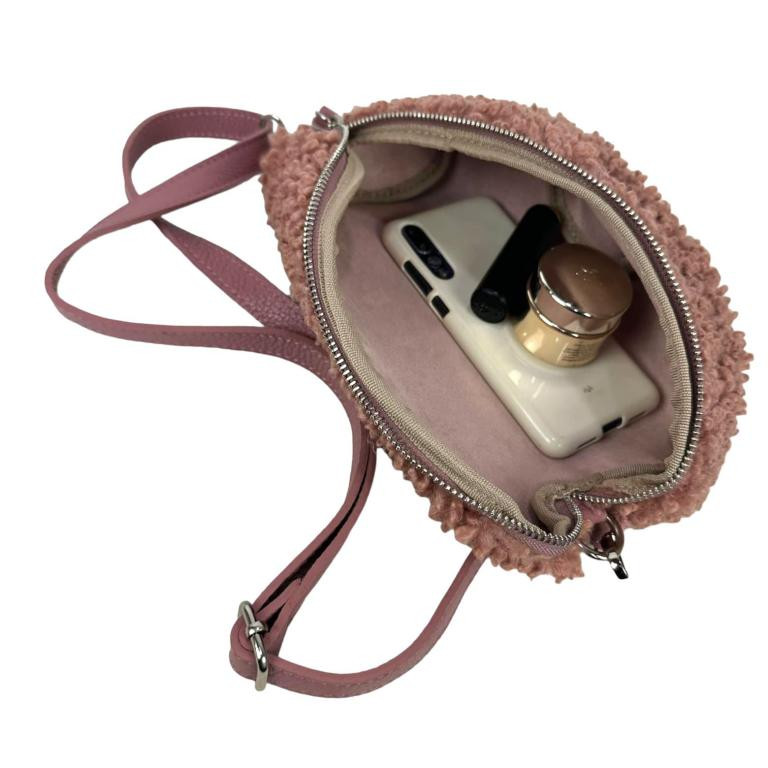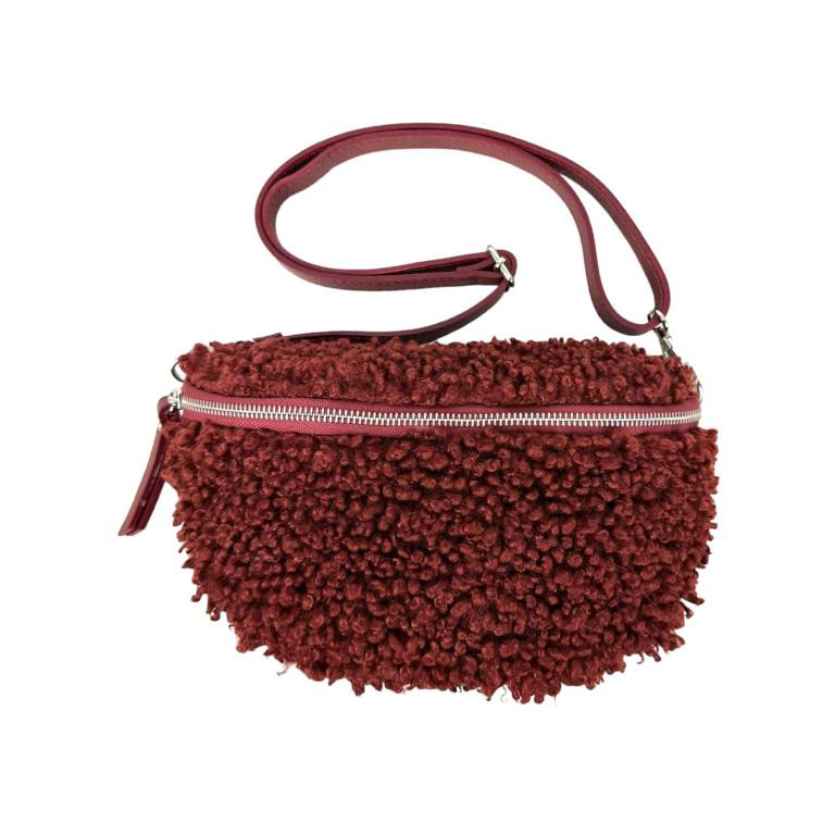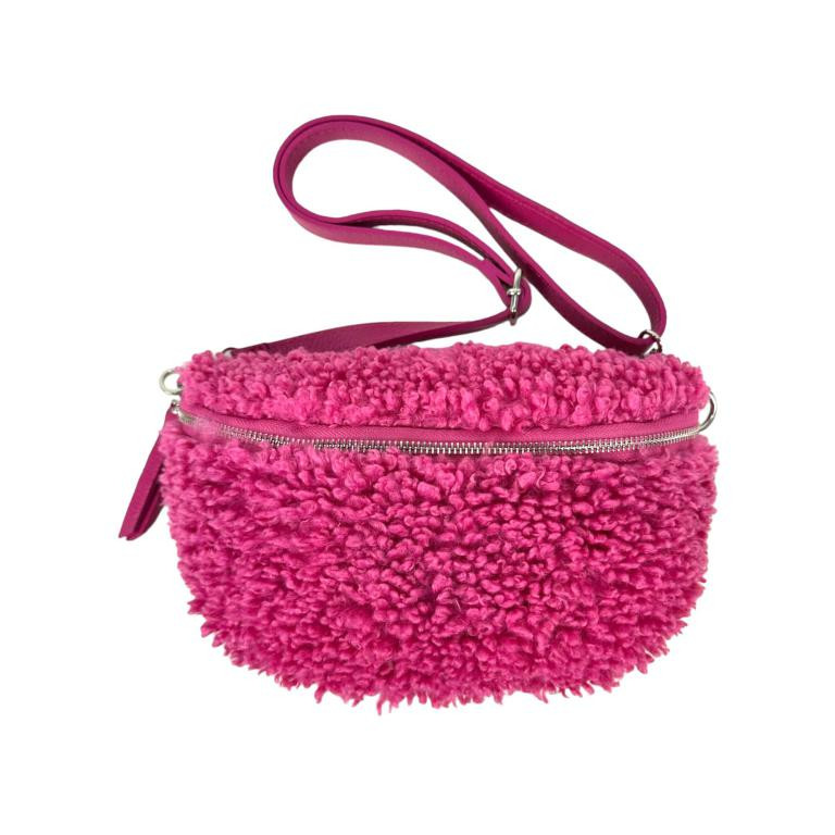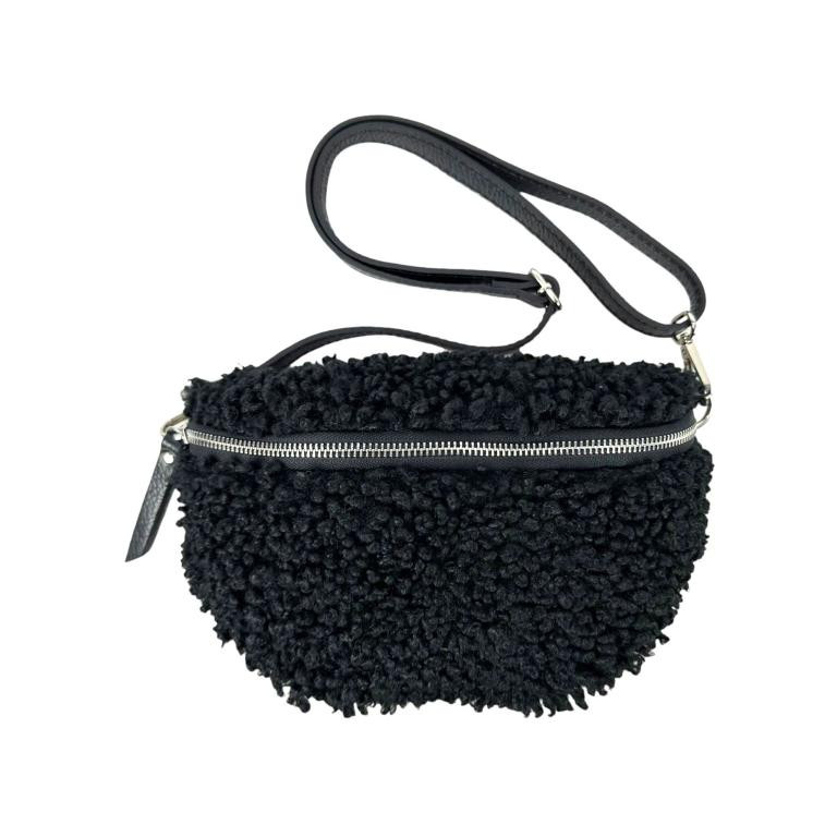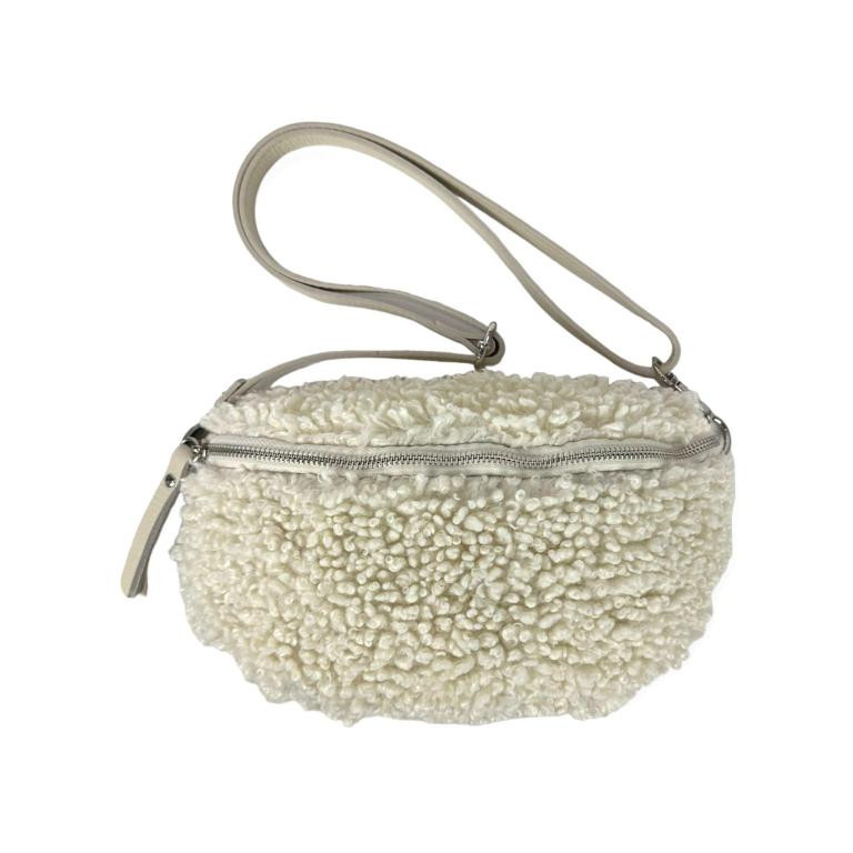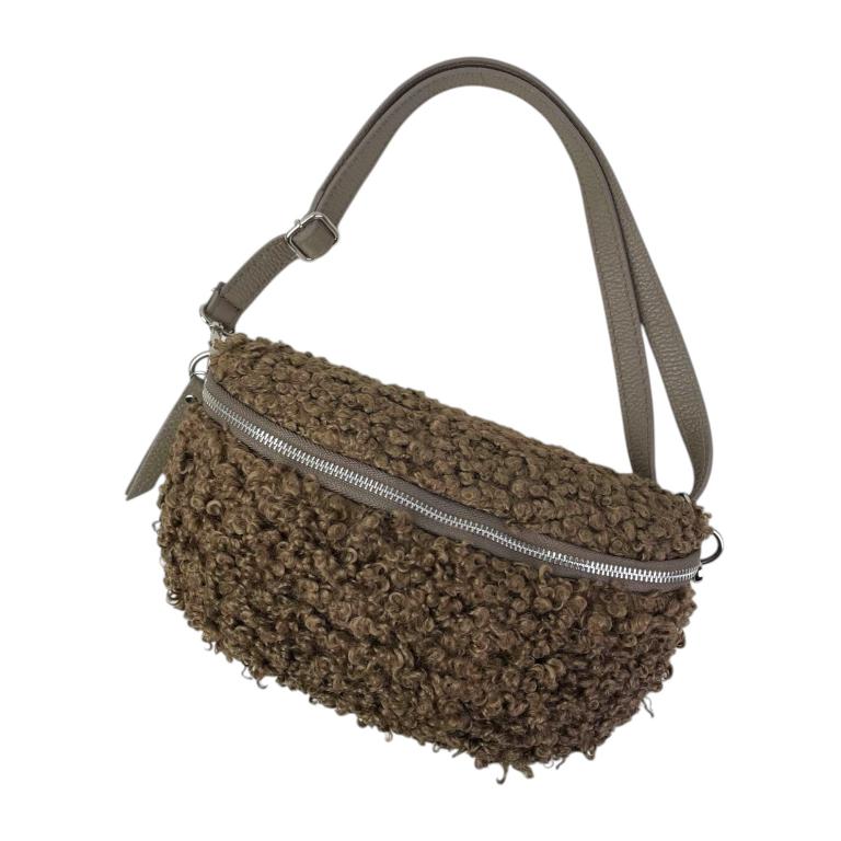 Riñonera con efecto borrego para Mujer con Cierre de Cremallera y Gran Capacidad. Fabricado en Italia.