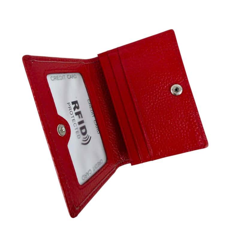 Tarjetero Compacto de Piel con Solapa de Botón y Gran Calidad para Mujer.