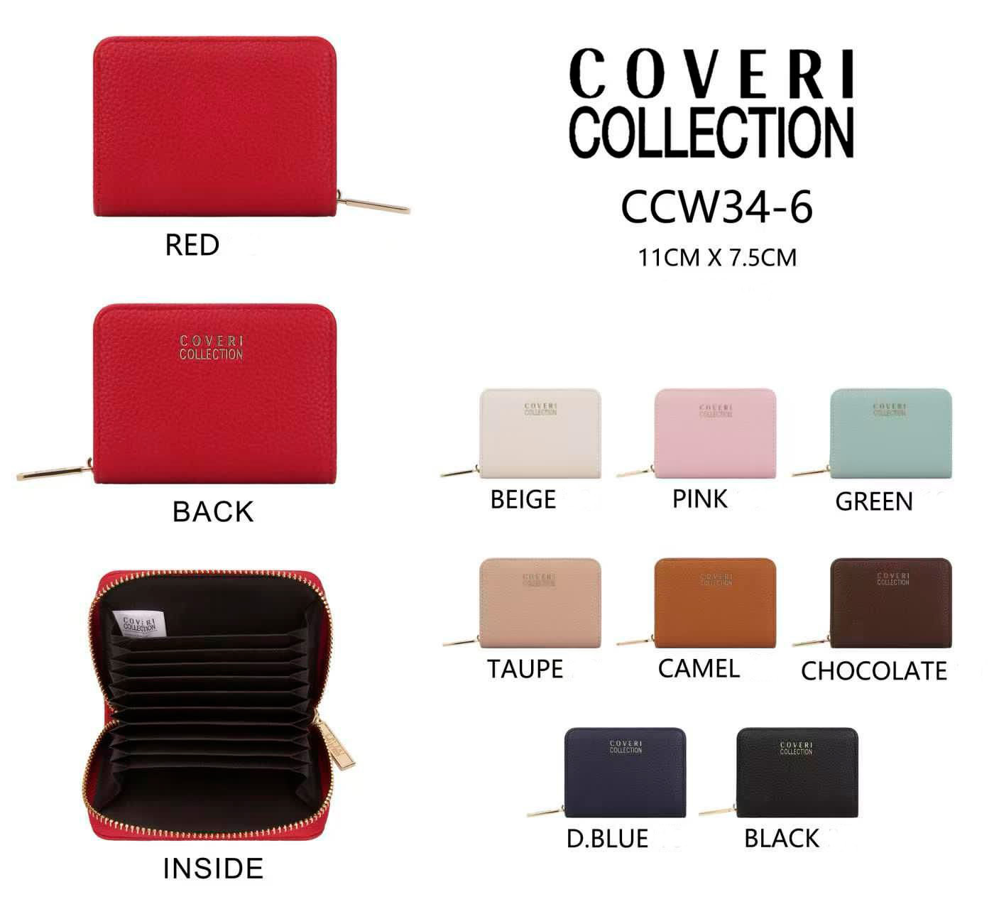 Tarjetero Sintético para Mujer con Cierre de Cremallera y Tamaño Compacto. Colección Coveri Collection.