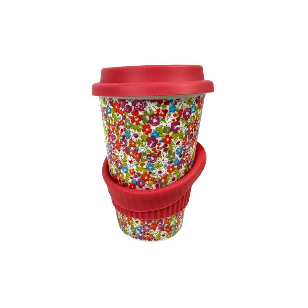 Taza de Cerámica con Tapa de Silicona y Protector de Mano para Mujer.