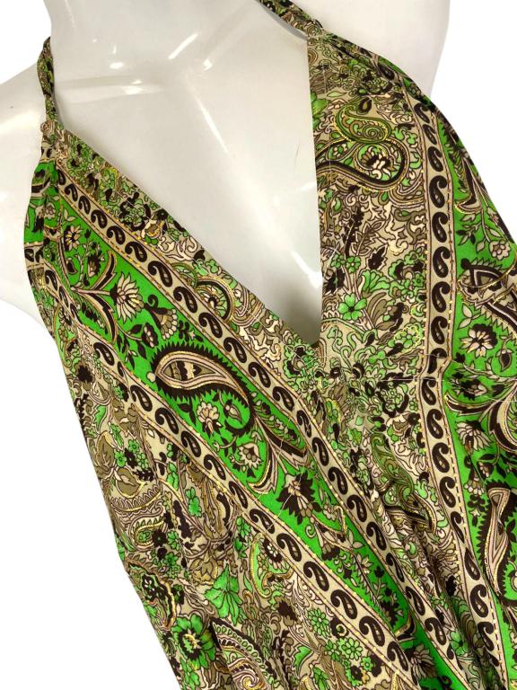 Vestido Largo Artesanal con Bonito Diseño en Seda India de Mujer con Espalda Descubierta, Tirantes, Escote y Talla Única.