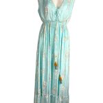 Vestido Largo Artesanal con Cordones Frontales, Escote y Talla Única para Mujer. Fabricado en India.
