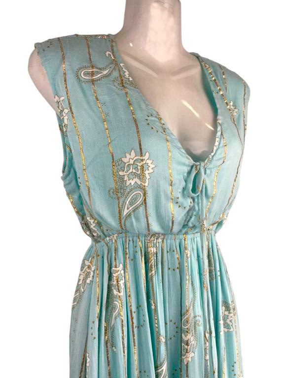 Vestido Largo Artesanal con Cordones Frontales, Escote y Talla Única para Mujer. Fabricado en India.