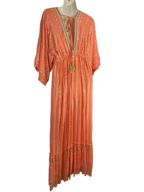 Vestido Largo Artesanal para Mujer con Preciosos Acabados, Manga Larga y Gran Calidad. Fabricado en India.