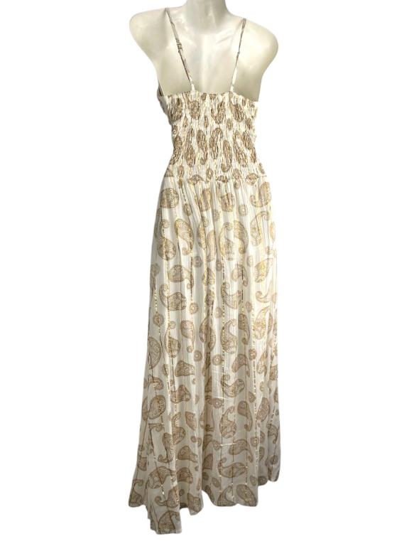 Vestido Largo Artesanal para Mujer con Gran Calidad, Elegante Diseño, Espalda Descubierta, Escote y Tirantes. Fabricado en India.