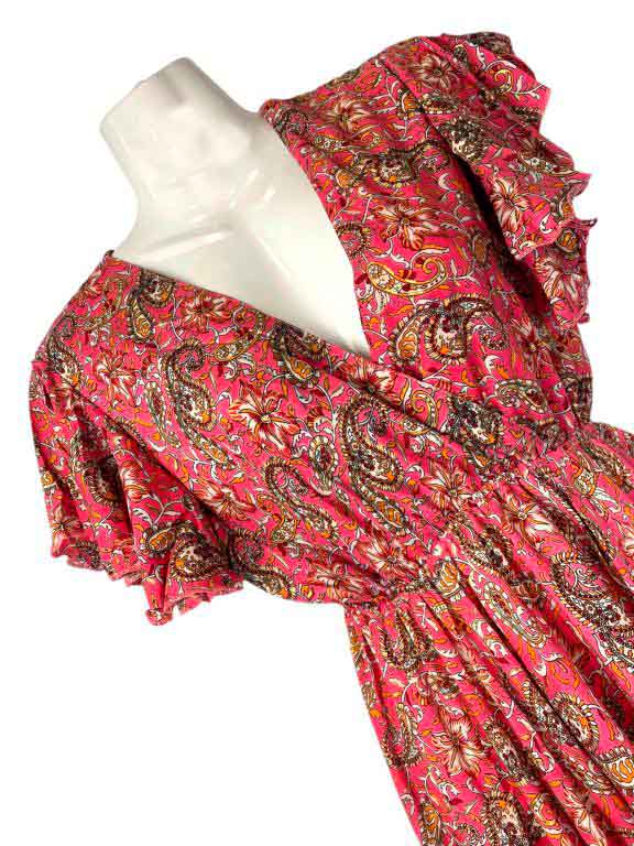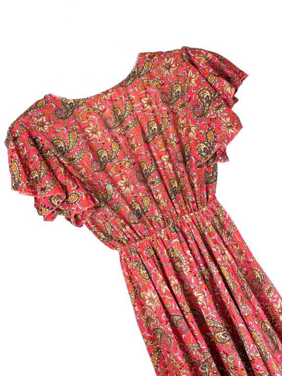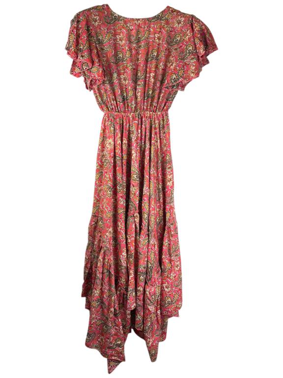 Vestido Largo Artesanal de Mujer Artesanal en Seda con Mangas de Volantes y Talla Única.
