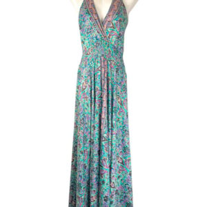 Vestido Largo de Mujer Artesanal Multicolor en Seda con Tirantes y Gran Calidad