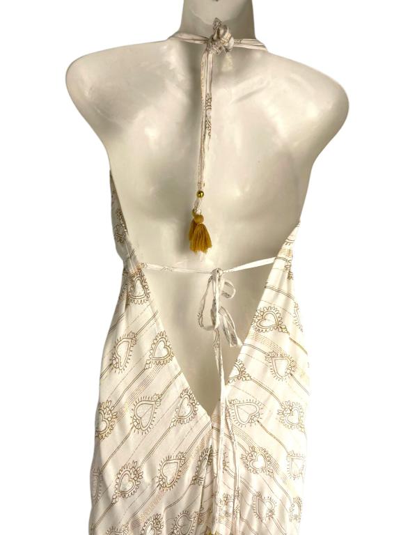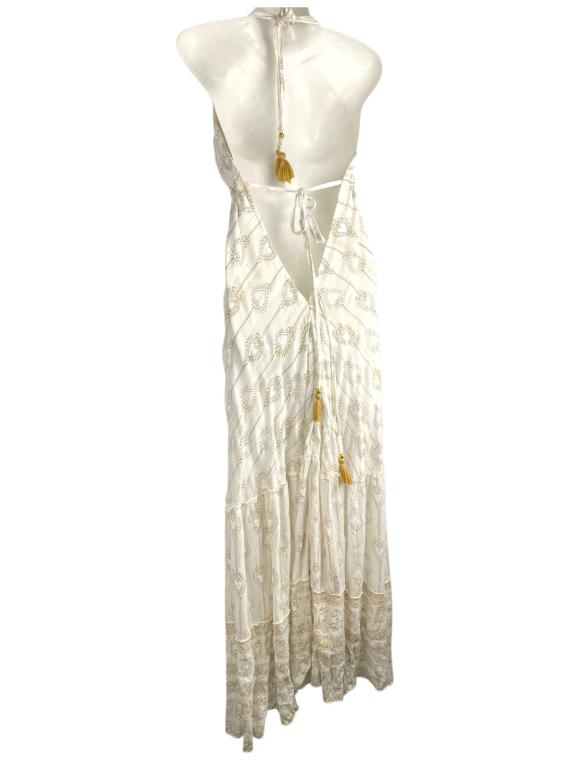 Vestido Largo y Ligero Artesanal Sin Mangas para Mujer con Espalda Descubierta y Talla Única. Fabricado en India.
