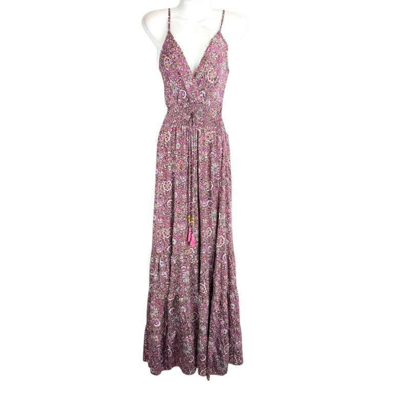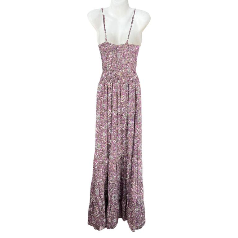 Cómodo Vestido Largo Artesanal de Seda para Mujer con Espalda Descubierta y Talla Única. Fabricado en India.