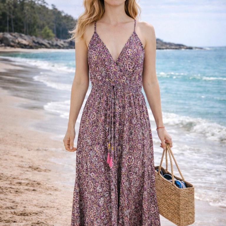 Cómodo Vestido Largo Artesanal de Seda para Mujer con Espalda Descubierta y Talla Única