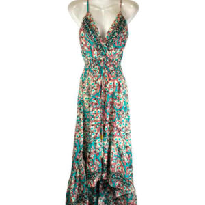 Vestido Largo Ligero y Artesanal en Seda India con Espalda Descubierta, Cuello en V, Tirantes y Talla Única de Mujer. Fabricado en India.