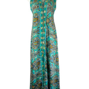 Vestido Multicolor Largo Artesanal para Mujer en Seda India con Cuello en V y Espalda Descubierta