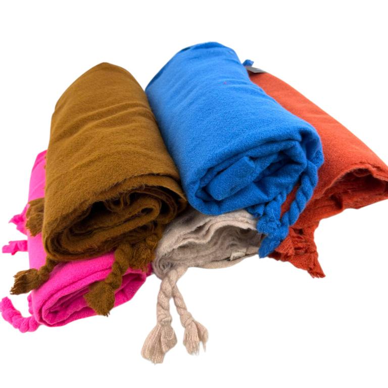 Preciosa Bufanda de Lana con Flecos Decorativos y Colores Lisos para Mujer