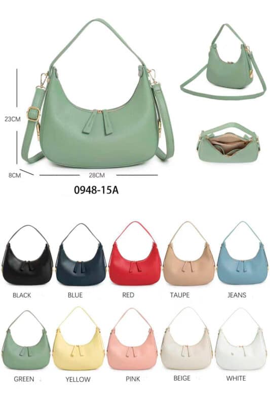 Bolso de Mano Sintético con Diseño Medialuna, 2 Cremalleras y Asa Corta Ajustable para Mujer