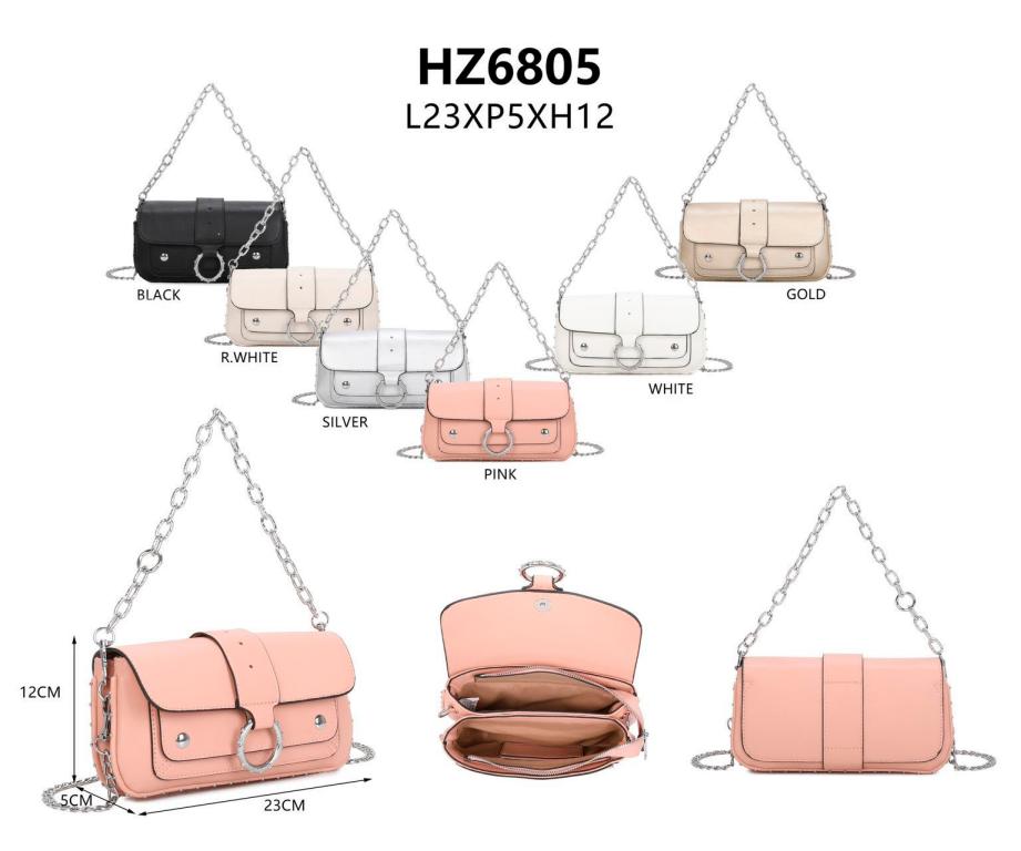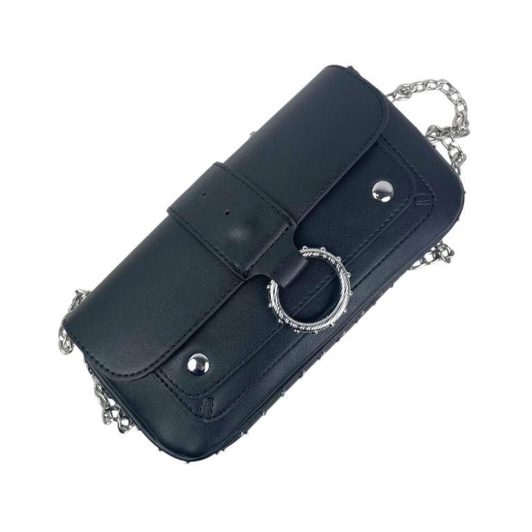 Bolso Bandolera Sintético para Mujer con Asas de Cadena y Aro Decorativo en la Solapa