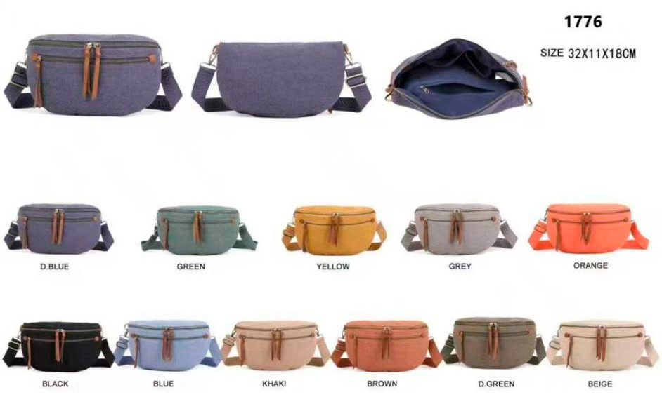Riñonera de Lino Lavado para Mujer con Bolsillo Frontal y Cierre de 2 Cremalleras