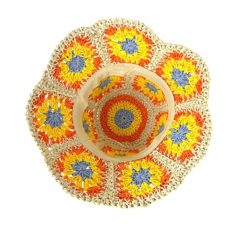 Sombrero de Papel Mujer con Diseño Flores y Talla Única para Verano