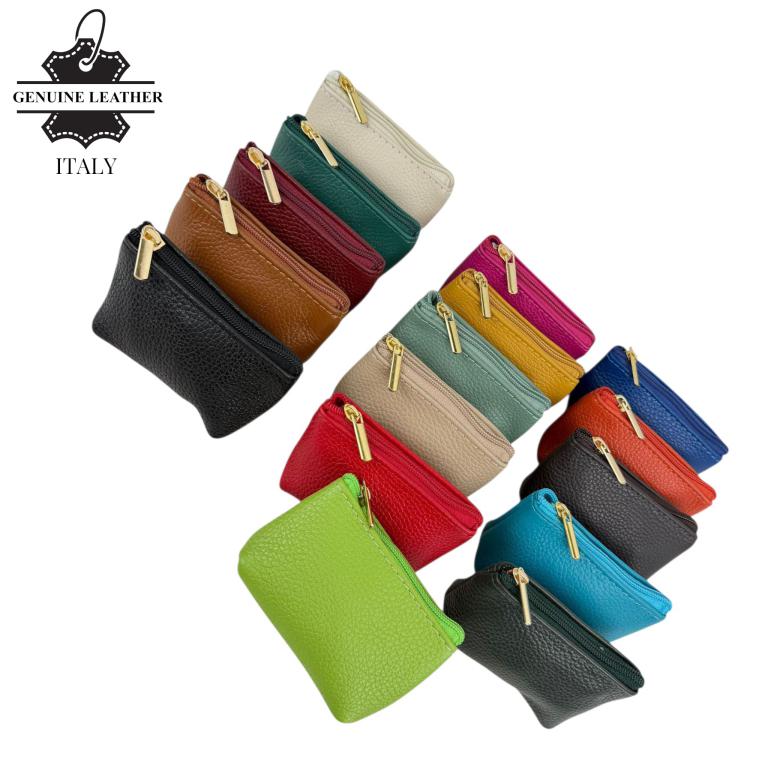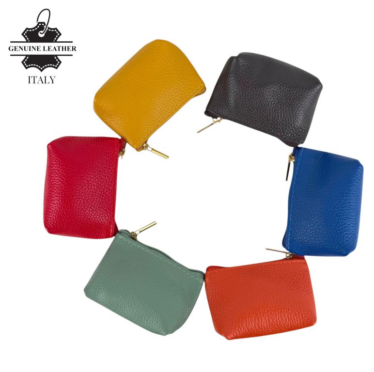 Monedero Compacto en Piel Italiana para Mujer con Cierre de Cremallera y Colores Lisos